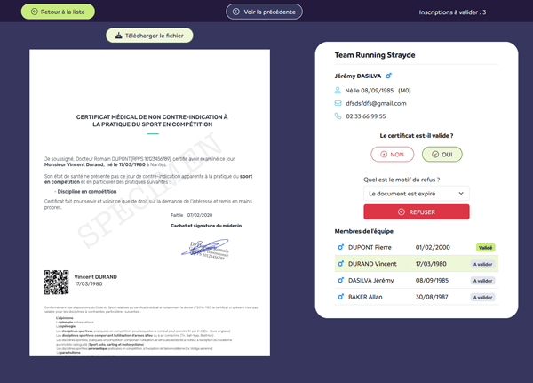 Le module de validation des certificats et documents obligatoires est conçu pour gagner en efficacité :